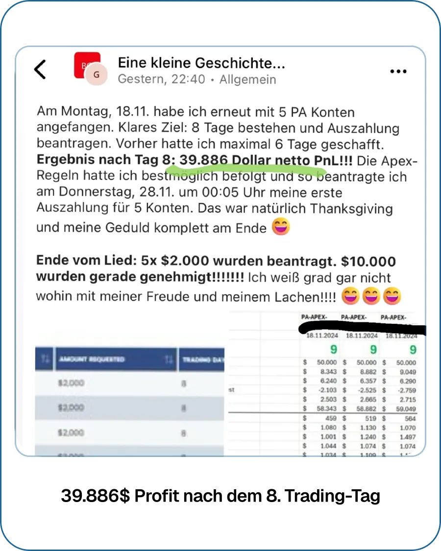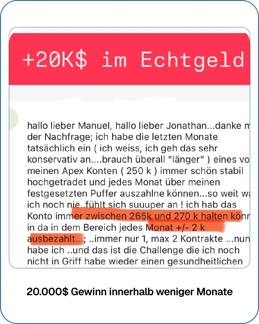 Ein paar Ergebnisse von den Leuten, die wir erfolgreich zu profitablen Tradern ausgebildet haben.